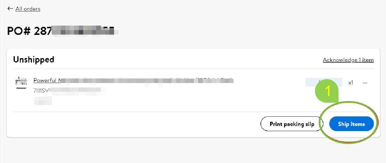 1)在卖家后台找到未发货的订单,点击”Ship Items”